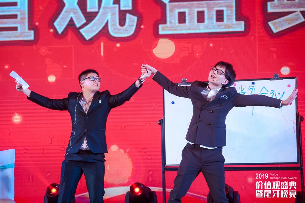 古裝禮服的高管與古風(fēng)街舞dancer組合一對(duì)對(duì)CP,成為本次晚會(huì)最大的驚喜。他們自信的氣場(chǎng)震撼全場(chǎng),現(xiàn)場(chǎng)歡呼與閃光燈不斷,令人仿佛置身戛納紅毯現(xiàn)場(chǎng);他們舉杯為大家送上美好的新春祝福,正式拉開了GALA晚宴的精彩大幕!