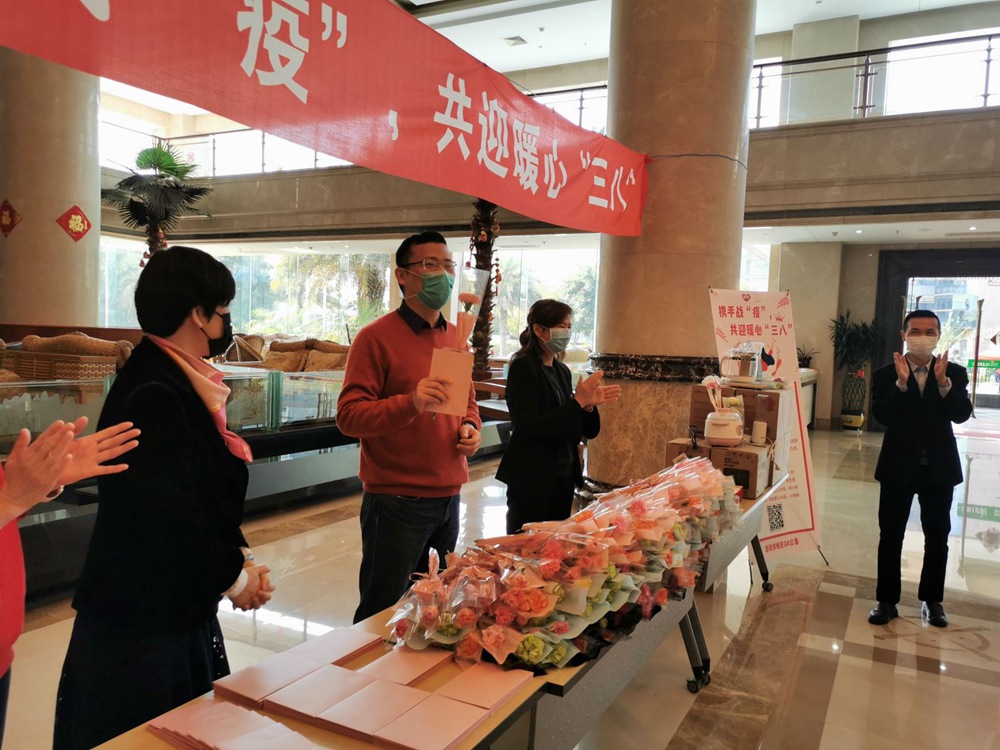 隨后總裁兼CEO孫亦農(nóng)先生、首席財(cái)務(wù)官裴紅蘭女士、首席營(yíng)銷官紀(jì)偉如女士、內(nèi)審中心副總、銀鷺食品黨支部書(shū)記林麗霜女士為獲得一等獎(jiǎng)的職工們送上鮮花、禮品。儀式簡(jiǎn)單而溫馨,雖然大家都戴著口罩,但口罩擋不住她們的美麗,面對(duì)疫情,我們?cè)茡肀?、云互?dòng),祝福是遠(yuǎn)程的,心卻是如此貼近,這個(gè)3.8節(jié)過(guò)得比往年更有意義。