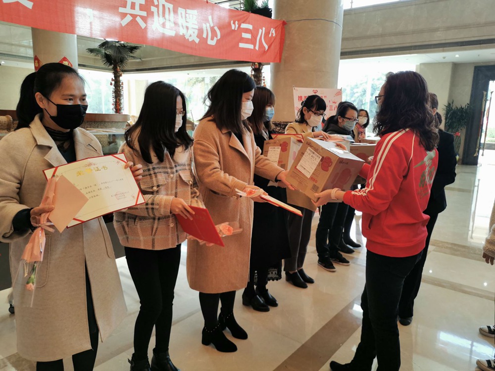 (圖為 高管們?yōu)楂@得一等獎(jiǎng)的女職工頒獎(jiǎng))