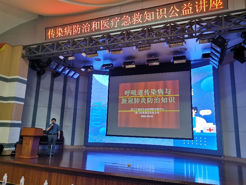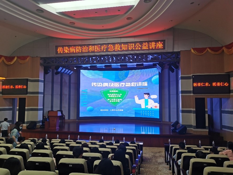 講座于9月2日下午在總部3F大禮堂進(jìn)行,翔安區(qū)疾控中心傳染病防治專家葉醫(yī)師、廈門(mén)市第五醫(yī)院急診科張護(hù)士及其團(tuán)隊(duì)為大家授課。