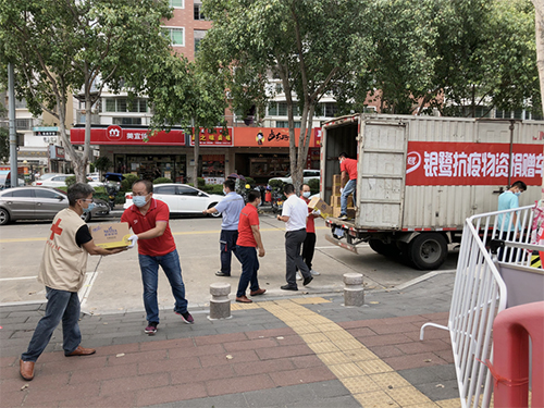 圖為銀鷺捐贈(zèng)產(chǎn)品運(yùn)抵社區(qū)防控點(diǎn)
